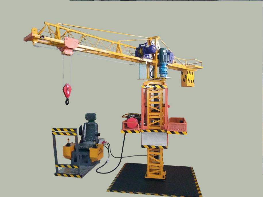 11、塔機操作部分和模擬機硬件連接,包含真皮座椅,真機操作手柄,及開關按鈕。和真機一樣,配有220V電鈴,回轉制動開關,啟動,停止按鈕。操作步驟:先打開電鎖,按總起按鈕,再按警鈴按鈕,電鈴響起,這樣機器就能正常操作了。回轉制動關閉,塔機停止轉動,打開制動按鈕,機器正常旋轉。