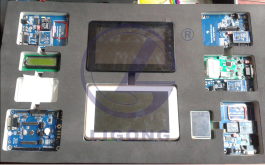 套件采用加厚的實驗箱,內部由三層分別放置獨立模塊的海綿板組成。第一層主要放置兩種高性能網關、一種 M0 嵌入式控制板和三頻段的 RFID 模塊,分別是以 Cortex-A8 和 Cortex-A9 為核心的智能網關。第二層主要放置六種 ZigBee通信節點,以及多達 30 種傳感器模塊。傳感器模塊可隨時替換 ZigBee 通信節點的傳感器部分。第三層主要放置 M3、M4 架構的嵌入式主板、高性能網關的四種擴展模塊、以及其他所需的傳感器和配線附件。