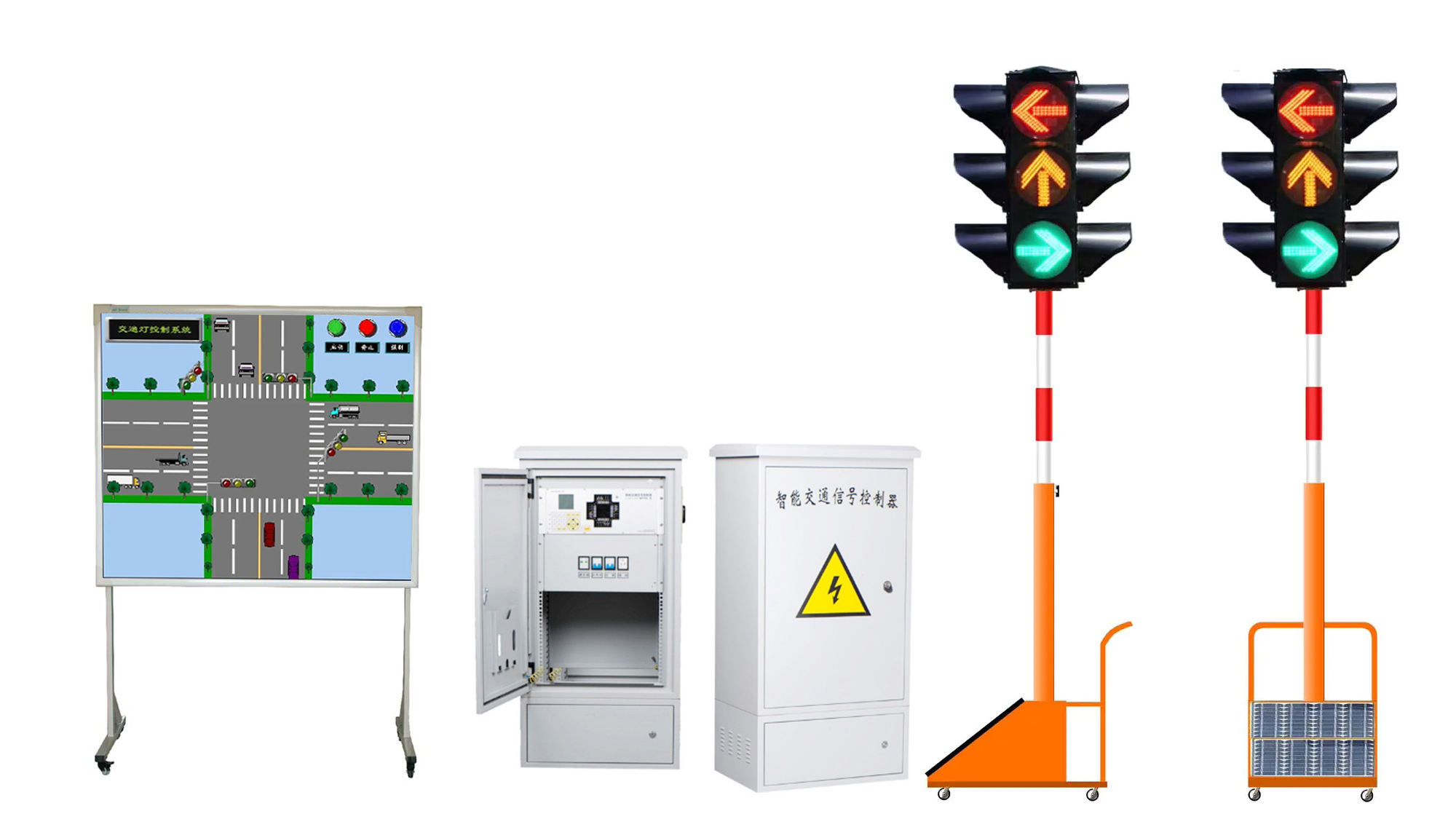 LGWM-J02型 智能交通信號路口控制系統包括2臺集中式協調交通信號控制機、8套機動車信號燈組、4套行人信號燈組和1套交通信號協調配時控制軟件,所有的設備均為實際工程用設備,并可做成可移動方式,可以方便的在實驗室室內和室外實驗。