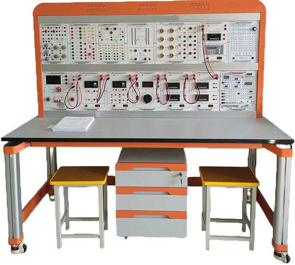 電工電子電拖綜合實驗平臺由實驗桌、實驗臺架、存儲柜、實驗掛箱組件、配件等組成。