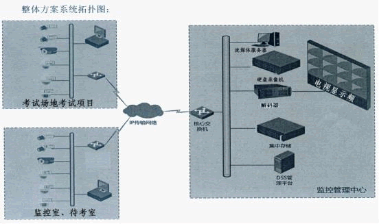 根據公安部123號部令標準,考試場地各考試項目及考場全景需實時視頻監控,考試場地視頻監控系統由視頻管理服務器、視頻管理軟件、硬盤錄像機、紅外智能球機、槍形攝像機及輔材、線材、電源單元等組成,達到考試場全景實時監控的目的
