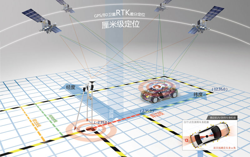 運(yùn)輸車駕駛?cè)藞龅伛{駛技能考試訓(xùn)練系統(tǒng)所使用的定位考試評判技術(shù)和目前公安車管所所采用的主流技術(shù)方案一致,利用實(shí)時(shí)動(dòng)態(tài)差分(RTK)測量技術(shù),實(shí)時(shí)獲取車輛運(yùn)行中的準(zhǔn)確位置和車輛狀態(tài)傳感器數(shù)據(jù),并結(jié)合訓(xùn)練場電子地圖與虛擬傳感器進(jìn)行比對,能快速準(zhǔn)確判斷并輸出考試訓(xùn)練評判結(jié)果。系統(tǒng)能快速精準(zhǔn)的判斷車輛是否壓線、車身是否出線、車輛是否后溜或途中是否停車等科目二場地考試訓(xùn)練情況。