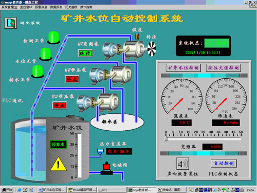 礦井水位過程控制系統(tǒng)實驗裝置是針對目前各大、中型煤礦井的井涌水量變化導(dǎo)致礦井積水水位變化不定的情況,本企業(yè)研制了礦井水位過程控制系統(tǒng)實驗裝置。由于地下涌水量變化的隨機性和危險性,要求有一定規(guī)模的礦井必須配備有大型的排水解決方案,本實驗臺是將大型的礦井水位自動控制系統(tǒng)進(jìn)行功能上的再現(xiàn),模擬現(xiàn)場安全水位自動控制,通過使用本裝置,能讓學(xué)生了解現(xiàn)場控制的各種環(huán)節(jié)。