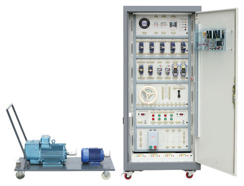 柜內已安裝有斷路器、熔斷器、接觸器、繼電器、空氣阻尼式時間繼電器、按鈕開關、信號指示燈、熱繼電器、電磁啟動器、Y/△啟動器、自耦變壓器等各種實訓元器件、且所有器件的接線都在接線端子排上進行,從而避免了因長期在器件本身進行走線而導致其損壞,通過走線槽進行工藝布線。