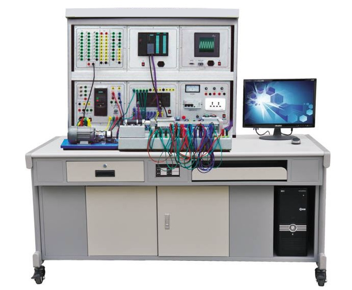實訓裝置由控制屏、實訓桌、主機實訓組件、實訓模塊、變頻器模塊、觸摸屏模塊、交流電機、電機導軌、測速機構等組成。