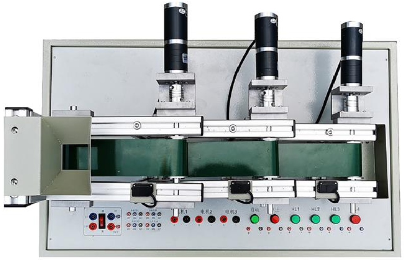 LGPFZC-1自動送料裝車實訓模型系統是用于物料輸送的流水線設備,主要是用于煤粉、細砂等材料的運輸。本實訓模型通過三臺電機,三個傳送帶、料斗、小車模擬車斗)的配合,有效地完成物料的運送、故障停止等功能。三臺電機控制三節傳送帶運輸,電磁鐵YA控制料斗下料與否,傳感器ac檢2測運料小車空滿;K1、K2、K3分別為電機M1,M2、M3故障設置開關。
