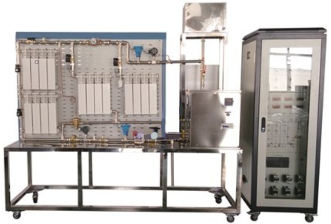 集中供暖系統按戶計量熱量、按熱量計費是建筑供暖發展的趨勢,也是節能環保的一項基本措施。“供熱熱計量綜合實訓裝置”包含了雙管水平并聯式上供下回和加跨躍管單管順流式二種不同的用戶布置方式,分別采用熱量計量表和熱量分配表計量。系統配備電熱水鍋爐、供熱管道和散熱片,并設有膨脹水箱、循環水泵、自力式壓差控制閥、恒溫控制閥、自動排氣閥、熱量表和電子式熱量分配表等設備。本裝置適用于各院校空調工程專業、供熱通風和建筑專業等相關課程的教學實訓。