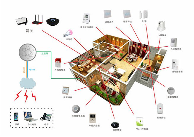 5、智能家居網關:智能家居網關作為整體系統(tǒng)的核心設備,建立zigbee無線網絡,與各個智能終端相連,運行在手機端的管理軟件向智能家居網關發(fā)送命令可統(tǒng)一管理各傳感器與窗簾電機、家用電器、燈光系統(tǒng)等設備。軟件把傳感器與電器聯(lián)系起來,使之成為一個整體,互相影響,互相協(xié)作運行,實現(xiàn)對家居電器的自動化管理、安防自動化等功能。軟件提供遠程服務,用戶通過軟件可實施遠程控制家電,并實現(xiàn)遠程監(jiān)控。