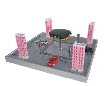 本企業設計開發的十字路口交通燈實訓系統為實際十字路口現況按比例微縮而成,主要由仿真實物建筑模型、車輛實物模型、道路模型及交通指揮燈等部件組成。有電源指示和控制、啟/停按鈕、手/自動按鈕、行人呼叫按鈕、四方向紅/黃/綠燈點陣指示模塊(具有東西南北十二方向顯示)、四方向數碼倒計時顯示模塊,車輛行進聲光指示(不同方向的車行進時可用不同的聲音及指示燈進行指示)等。控制器采用;三菱主機為FX1N-24MR 內置開關量I/O(14路開關量輸入/10路數字量輸出)+FX2N-8EYR(8路數字量輸出)。選用的主機功能齊全,性能優越。實訓操作靈活方便,能滿足大中專院校、職業技術學校、職教中心可編程控制器技術的教學、課程設計和畢業設計。