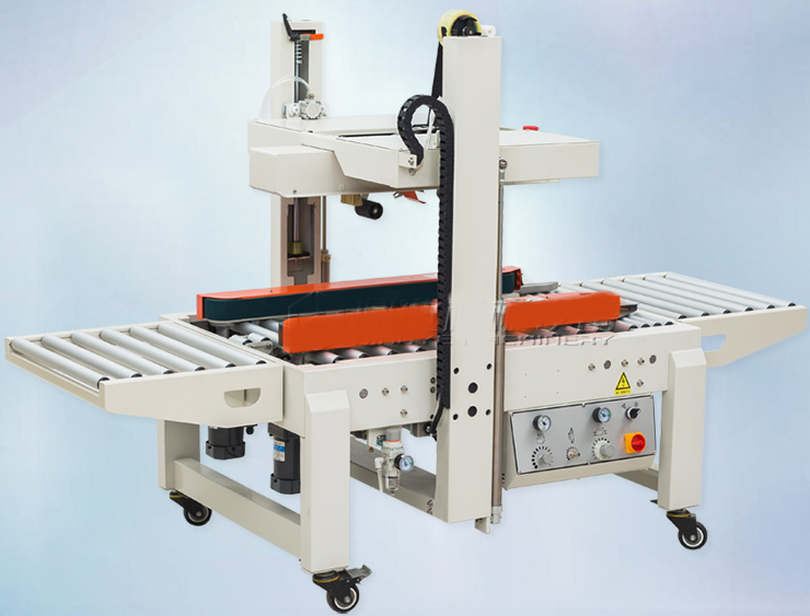 封箱機(jī)高度和寬度可根據(jù)紙箱大小自動(dòng)調(diào)整到合適的位置可滿足紙箱尺寸不統(tǒng)一,但需要連續(xù)封箱的需求。