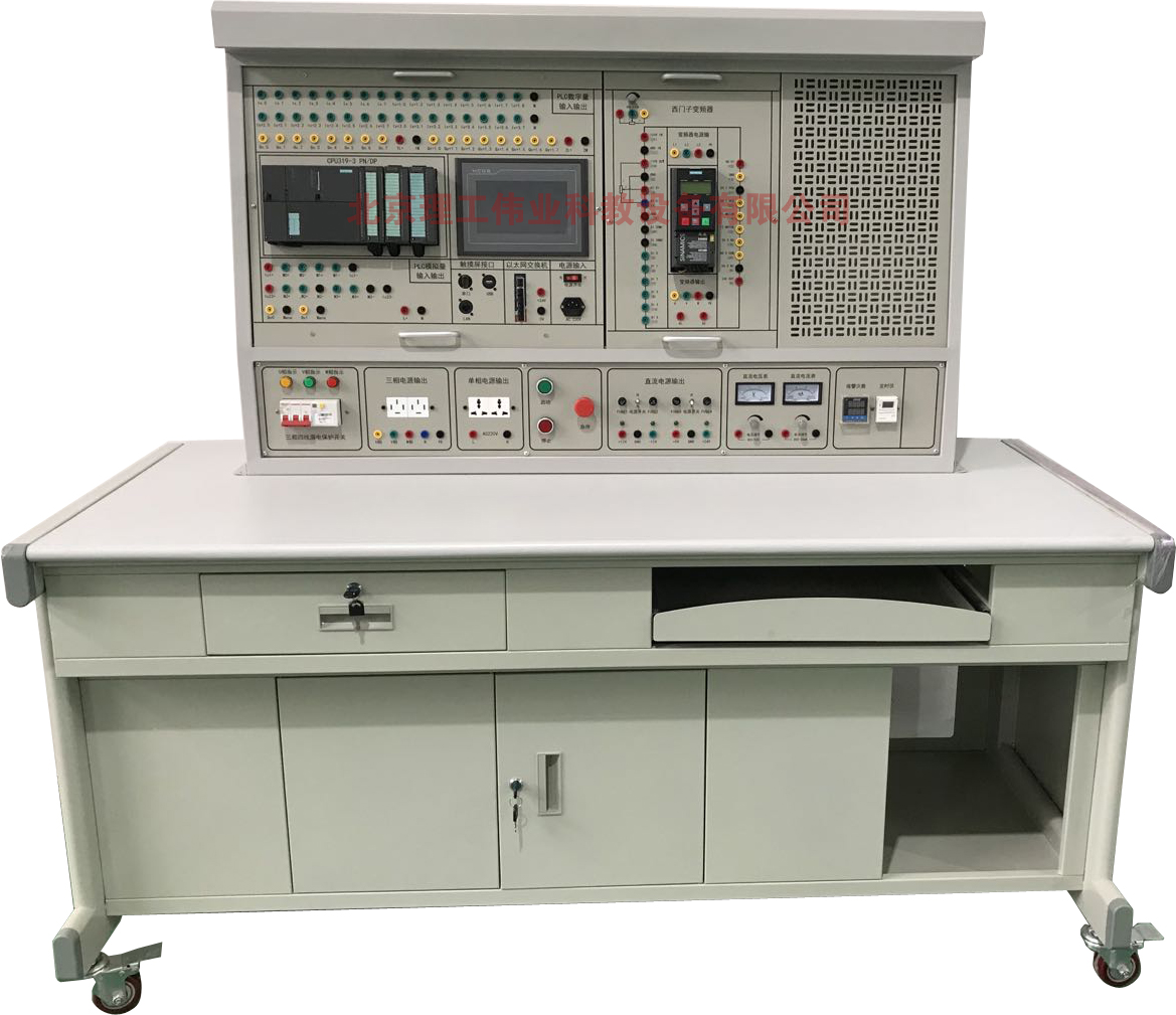 8、實驗臺:尺寸:1600×700×1450mm,實驗桌采用全鋼結構,桌面采用2mm厚鋼板機制而成,強度和壽命是高密度板的幾十倍,桌體設有兩個大抽屜,無聲導軌安裝,用于放置工具及資料,實驗桌聯體設計,實驗桌下方設有元件儲存柜、可以放置多余的實驗模塊,底層設有四個帶剎車的輪子,配24VDC電壓源2路、24VDC電流源(0-20mA)1路、220VAC電源3路、110VAC電源1路、漏電保護器、急停按鈕、每路電源設開關;