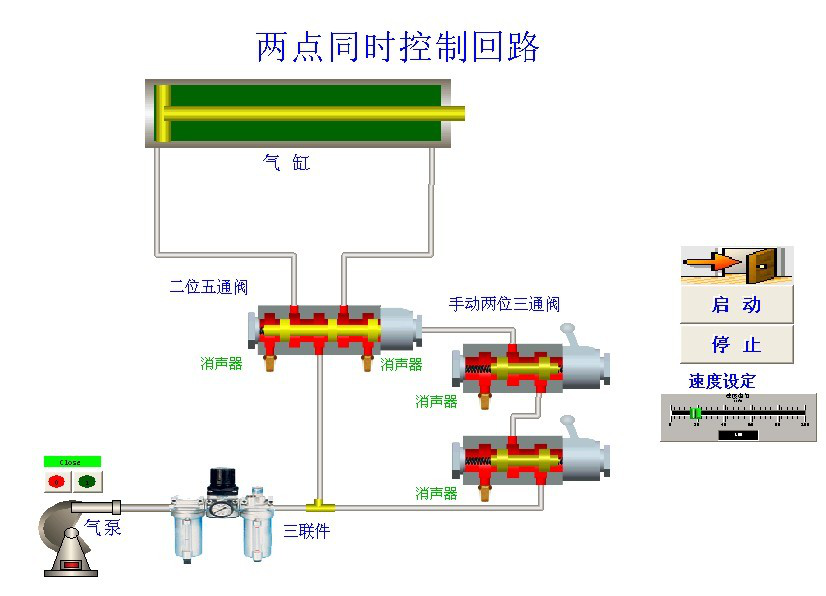 3、單作用氣缸速度控制回路