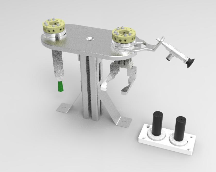 6、機器人工具模塊機器人末端工具是機器人的執(zhí)行單元,如圖 8 所示此模塊包括尖點輔助工具、筆工具、氣動夾爪工具和氣動吸盤工具。尖點輔助工具形狀為圓錐,具有TCP 校準(zhǔn)功能,同時可以模擬去毛刺、涂膠工具。筆工具、夾爪工具和吸盤工具都配備了機械快換工具,與機器人法蘭盤的機械快換工具配套使用,可實現(xiàn)工具的快速更換。筆工具內(nèi)部設(shè)置有緩沖裝置,可以有效減少學(xué)生初步學(xué)習(xí)機器人操作時,由于不熟練導(dǎo)致剛性碰撞產(chǎn)生對工具的損壞。筆工具可以完成軌跡、寫字和繪畫等實驗內(nèi)容,彩筆可快速更換。夾爪工具和吸盤工具采用國際知名品牌, 用于物料的抓取和吸附。