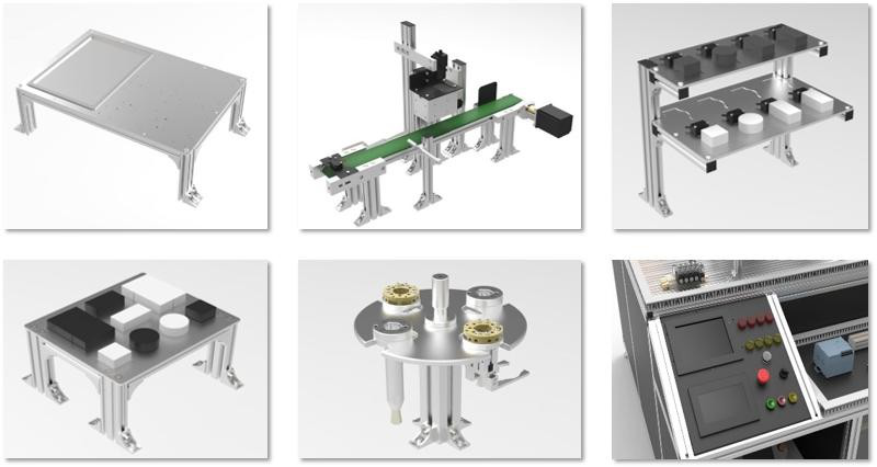 另外,模塊化機械設(shè)計是工業(yè)發(fā)達國家近二十年來一直采用的一種先進的機械產(chǎn)品設(shè)計方法。學(xué)生自主設(shè)計臺面功能模塊可作為《機械設(shè)計》課程的綜合實驗部分。學(xué)生根據(jù)課上所學(xué)機械原理和機械設(shè)計的基礎(chǔ)知識,在三維設(shè)計軟件中實現(xiàn)自己的設(shè)計想法,可自行設(shè)計機器人末端工具,臺面工裝、生產(chǎn)流水線及視覺分揀等。學(xué)生也可組隊完成整個臺面的重新規(guī)劃,利用設(shè)備本體提供的氣路和電路總線,賦予臺面新的設(shè)計亮點。此部分也可作為機械設(shè)計、機械制造、機電一體化、工業(yè)設(shè)計等專業(yè)的畢業(yè)設(shè)計內(nèi)容。此工作站整體外形統(tǒng)一,具有外部通訊接口,所以有配置靈活、便于擴展的優(yōu)點。各工作站既可以作為獨立的功能個體,完成機器人的實訓(xùn)任務(wù)。也可以作為相互的擴展模塊,通過電纜緊密拼裝后組成一個整體的結(jié)構(gòu)。某一個工作站作為主控,其他工作站協(xié)同。通過之前所述不同的設(shè)計賦予每個工作站不同的功能, 可添加節(jié)拍控制、生產(chǎn)管理、工業(yè)系統(tǒng)工程等管理思路,使其整體實現(xiàn)更加多元化的功能。