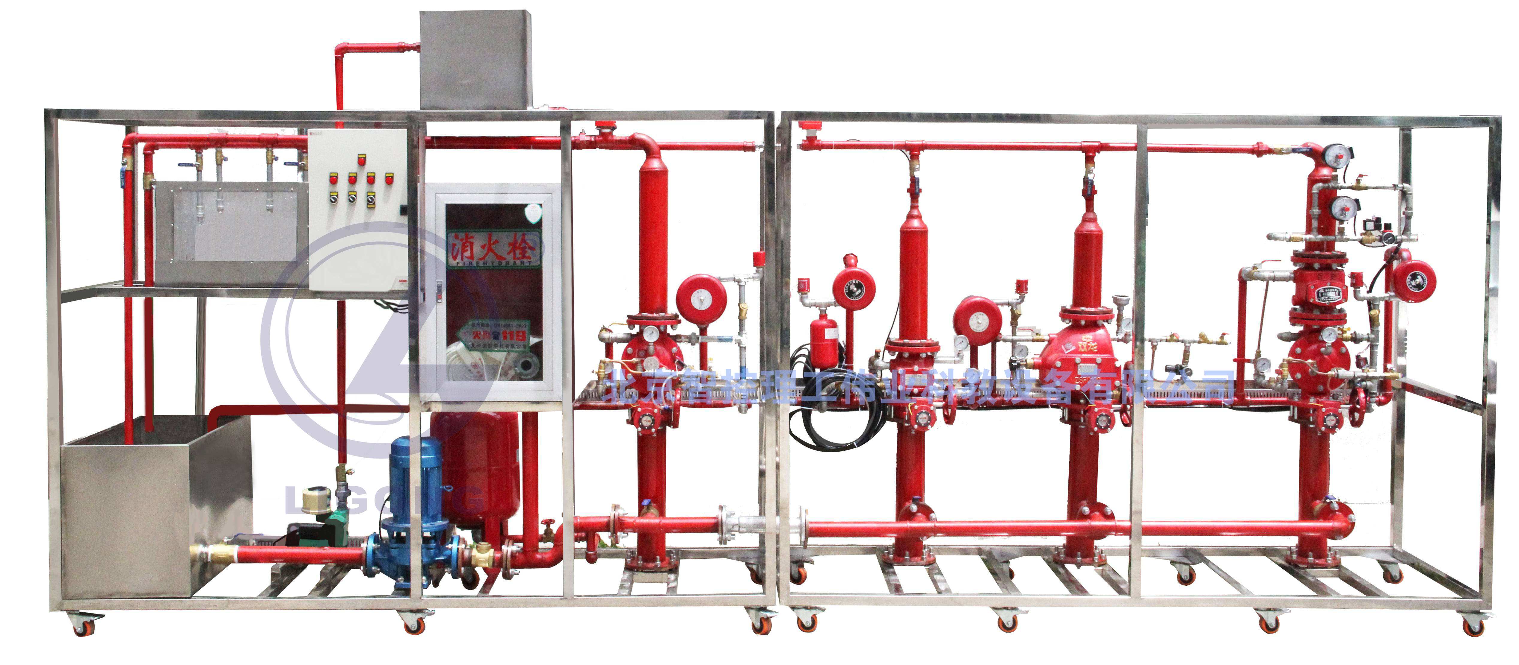 LG-LXN05A型 建筑消防系統演示系統分為自動噴水滅火系統、消火栓系統、消防報警聯動控制中心(選配)三部分;