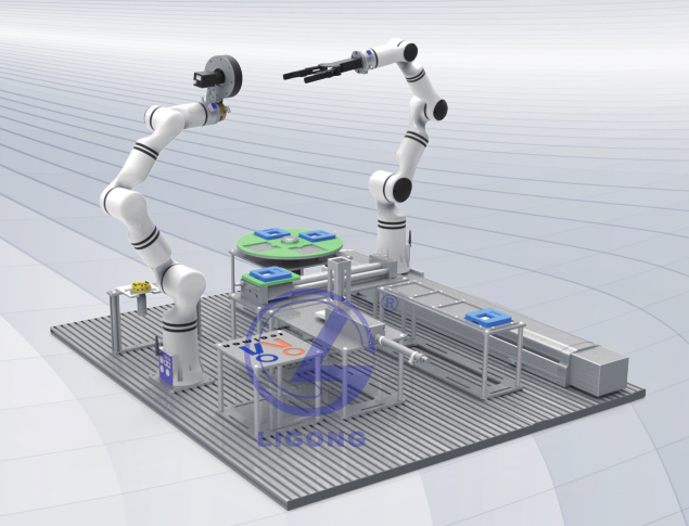 LGAI-ROS02型 人工智能協作機器人綜合實訓平臺基于協作機器人配備海康相機、機器人導軌、平面倉庫、旋轉倉庫、快換工具以及多種類型的末端工具,涵蓋機器人系統、工業視覺系統、自動化控制系統、計算機編程技術等,可以在一臺設備上進行多種與機器人應用技術相關的學習和實訓,平臺結構緊湊、拆卸方便,便于應用,支持二次開發應用設計,是一個綜合性較強的機器人系統實訓設備。