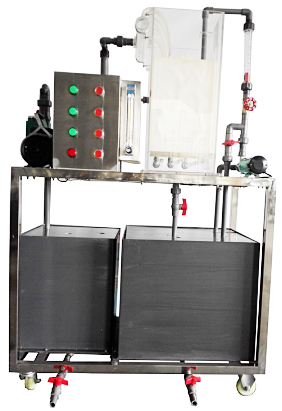 一、主要配置: 供水箱、水泵、氣泵、生物接觸氧化池、豎流式二沉池、流量計、管路、閥門、電路控制系統、不銹鋼臺架及控制屏。 二、技術參數: 1、供水箱:容積...