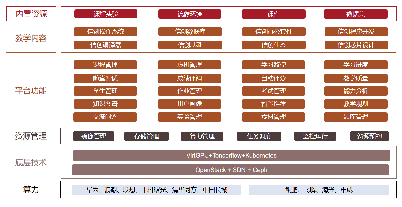 一、建設方案 高校信創實驗室主要包括數智化實踐教學平臺和信創課程資源。 數智化實踐教學平臺采用國產化技術,實現云計算資源的集中共享、統一調度管理的技術創...