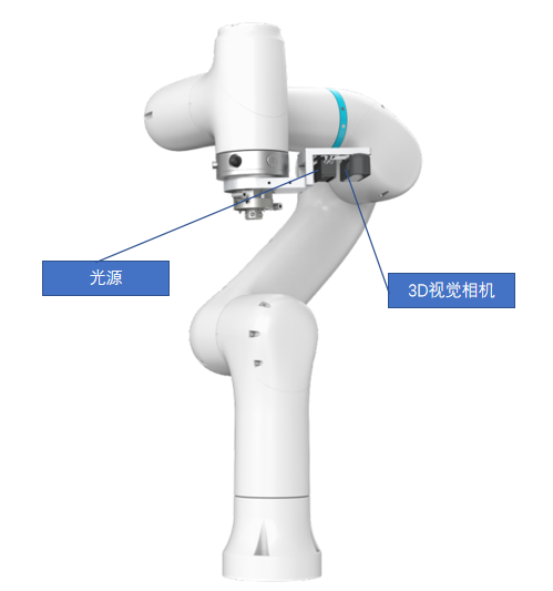 3D視覺檢測單元是整個設備的核心單元之一,基于雙目結構光3D成像技術獲取物體的深度圖像,具有高精度、廣視角等技術特點??筛鶕曈X系統的處理結果,機器人可進行物料無序分揀、形狀識別、顏色識別。如圖所示。