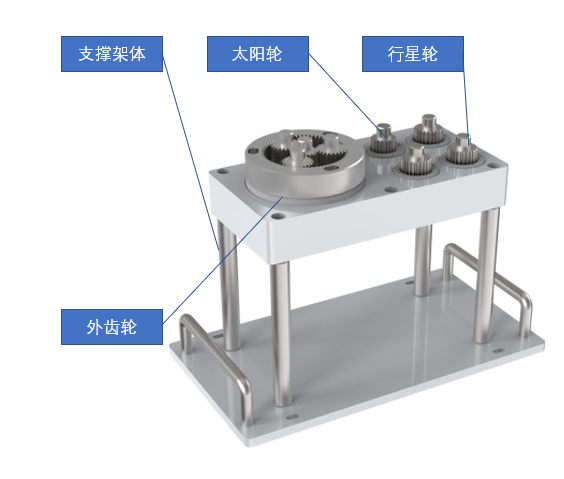 行星齒輪裝配單元是用于機器人和視覺進行柔性裝配的重要一環,由支撐架體、行星輪、太陽輪、外齒輪等組成。此裝配過程通過視覺定位齒輪位置進行行星齒輪快速柔性裝配,可避免齒輪齒形誤差造成的安裝困難。并且很好的展示了協作機器人的力控特性。如圖所示。