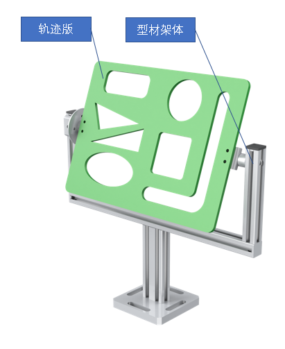 2D軌跡訓練單元是將協作機器人對產品裝配前的涂膠工藝進行功能抽象化,協作機器人抓持涂膠工具沿軌跡板上不同輪廓軌跡運動,模擬涂膠工藝,軌跡板角度可調,保證工藝真實性同時增加教學可行性和趣味性。配備發動機模擬蓋板組件,實現定點位置處的軌跡訓練如圖所示
