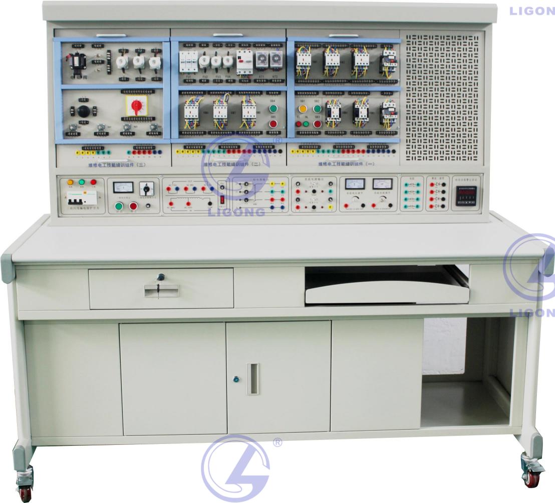 LGWX-082型 中級維修電工實訓考核裝置采用國際常用的模塊化設計,根據不同的實訓考核內容配置相應的實訓模塊,實訓方便、布局合理、易于擴展升級,實訓內容涵蓋電工儀表、電工接線工藝、電子電路、電工照明配電、電力拖動、PLC綜合訓練、觸電急救、安全消防等,符合初、中級電工國家職業標準教、培、考的要求,適應各職業學校、技工學校、中專學校、勞動培訓及技能鑒定機構等單位的教學培訓、實訓考核、技能鑒定。