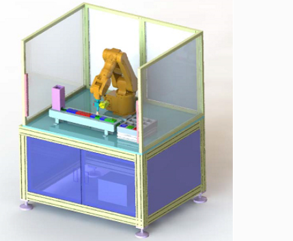 由工件存儲盒托盤及型材立柱組成,安裝在型材實(shí)訓(xùn)桌上,機(jī)器人用于放置裝配完的組件進(jìn)行堆垛,也可以通過機(jī)器人對裝配完成的組件進(jìn)行拆垛。