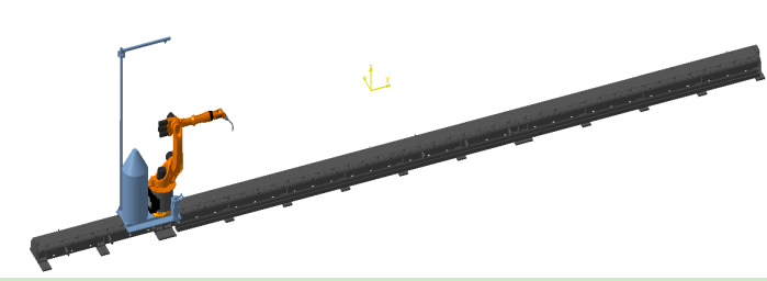 4、行走系統:滿足機器人行走距離13m;導軌底座需參考我院提供的基本樣式分為兩段制作,并滿足在鋼結構上快速定位的需求;兩段導軌底座能夠實現拼接,并保證機器人的正常行走;導軌底座還需設置吊裝眼板,保證當機器人固定在導軌底座上時的整體結構強度;供應商需提供焊接機器人靜置、行走以及擺動焊接狀態下的導軌底座應力應變有限元分析報告。