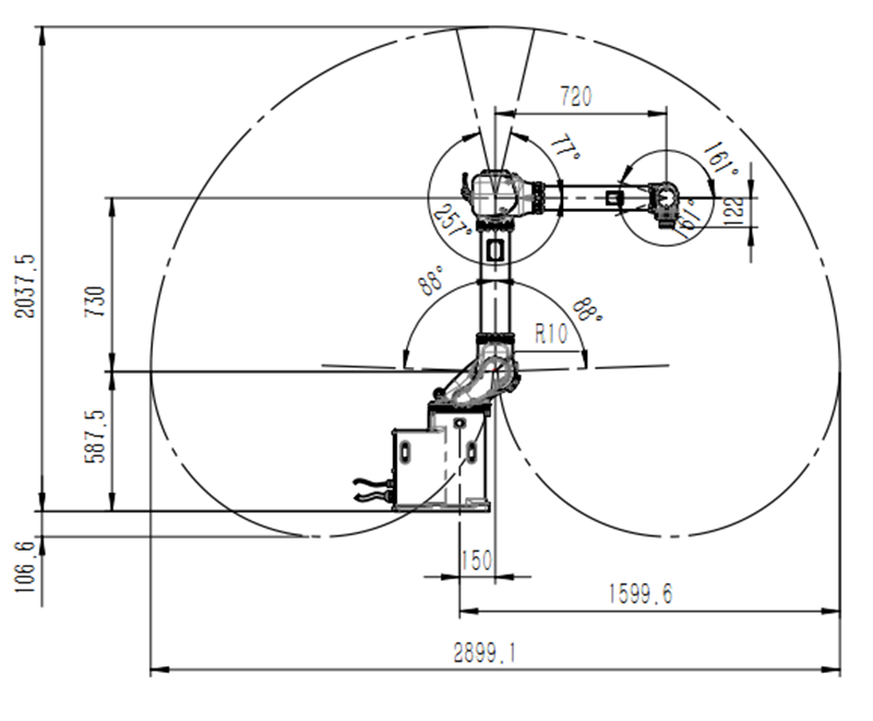 1、安裝占地面積小:機(jī)器人底座非常小,占地面積小于0.1㎡