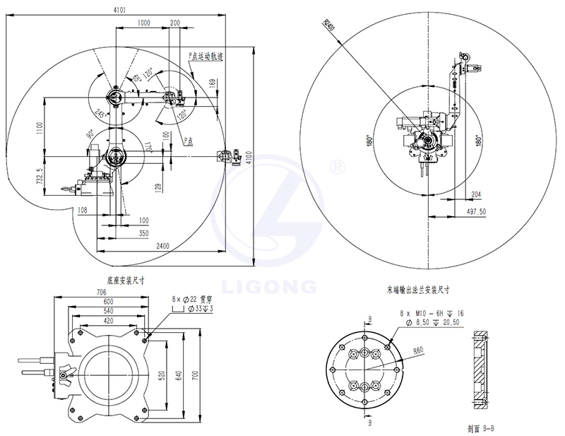 1、雙旋構型:相較于通用機器人的外旋轉運動方式,LG-SX5110工業機器人沿用SX7系列工業機器人的雙旋構型(外旋、內旋)。內旋轉運動方式可以讓SX5110工業機器人在場地空間有限的多個設備工位間實現大幅度連線或搬運,占地面積非常小,運動不占用外部空間。