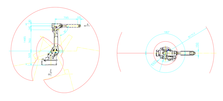 LGL-620型 六軸工業機器人工作空間大、性能穩定、外型美觀、重復定位精度高、上下料軌跡優化節拍快、模塊化的機械結構設計。手腕額定負載16Kg,*大負載波20Kg,*大工作半徑1717mm。