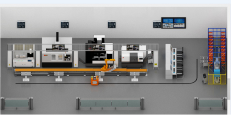 數(shù)控機(jī)床加工制造單元及其自動(dòng)化改造、自動(dòng)激光打標(biāo)單元、自動(dòng)化立體倉儲(chǔ)單元、工業(yè)機(jī)器人上下料單元、 AGV運(yùn)載單元、監(jiān)控單元、系統(tǒng)中央控制單元等多個(gè)功能模塊單元組成了智能制造生產(chǎn)線系統(tǒng).