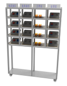 貨位數量:4 行×4 列 16 個貨位 整體尺寸:1640×400×1800mm 貨位傳感器:光電式、二維碼 材料:鋁型材 托盤:尼龍塑料定制 |