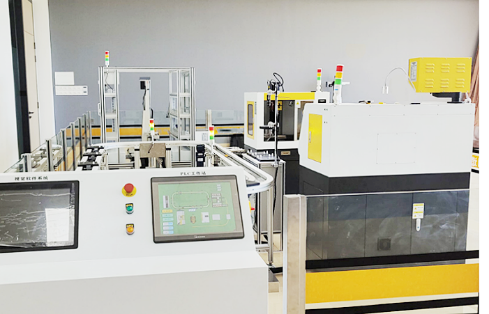 LGY-CX06型 智能制造生產線實訓系統是對工業現場大型設備進行提煉和濃縮的一款小型智能制造生產線實訓設備,專門為職業院校、教育培訓機構等而研制的,它適合機械制造及其自動化、機電一體化、電氣工程及自動化、控制工程、測控技術、計算機控制、自動化控制等相關專業的教學和培訓。融合了數控機床加工、光、電、氣,包含了PLC、機器人、傳感器、氣動、工業控制網絡、電機驅動與控制、計算機等諸多技術領域,對柔性制 造技術的工作過程進行研究,監控系統、主控PLC和下位PLC通過網絡通訊技術構成一個完整的多級計算機控制系統,通過訓練,使學生了解智能制造生產線的基本組成和基本原理,讓學生全面掌握機電一體化技術的應用開發和集成技術,幫助學生從系統整體角度去認識。為信息學院自動化和電氣工程自動化本科及其控制科學與工程研究生均提供了實驗和科研的平臺。