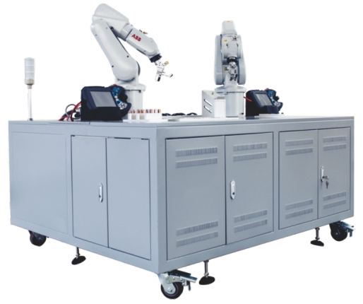 隨著現代制造業和服務業的轉型升級,工業機器人在測量檢驗、包裝、分揀處理、搬運、碼垛、填裝、機器上下料、裝配、金屬切割、焊接、噴涂等領域得到了越來越多的應用。在不同領域的應用會對機器人的安裝、編程、調試人員提出了不同的要求。根據現實工業情況,設計研發了LGY-JQ05A型工業機器人實訓考核裝備(鼠標裝配)。可將無線鼠標的散件(無線接收器,電池,后蓋,底板),通過兩個ABB機器人的協作,將無線鼠標裝配完成。