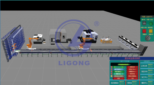 主要由立體倉庫、機器人、數控機床、加工中心、雕銑中心、視覺檢測站、自動裝配站、控制柜、傳送線等組成