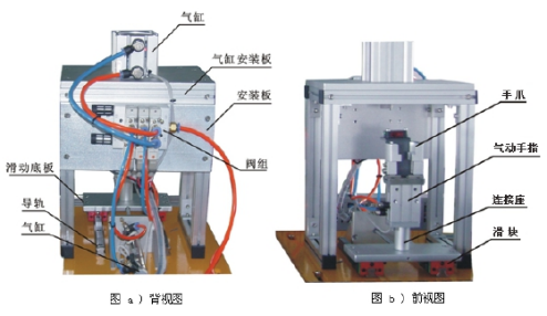 該配置配有多種類型的氣缸、電磁閥,磁性開關,如:單出桿氣缸、單出雙桿氣缸、旋轉氣缸等氣動執行元件、單控電磁閥、雙控電磁閥和磁性開關等,基于這些氣動控制元件,可完成下列氣動技術的安裝調試訓練任務: