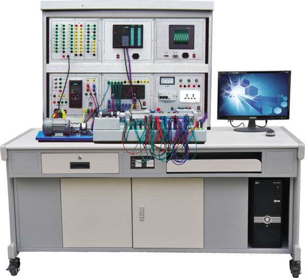 7、實(shí)驗(yàn)臺(tái)操作面板: PLC和變頻器的輸入輸出點(diǎn)均引到實(shí)驗(yàn)臺(tái)面板上,采用高絕緣的安全型插座及帶絕緣護(hù)套的高強(qiáng)度安全型實(shí)驗(yàn)導(dǎo)線(xiàn),方便實(shí)驗(yàn)接線(xiàn)。包括各種按鈕、指示燈、繼電器等,配置電位器,可模擬傳感器的輸入信號(hào),方便學(xué)生自行設(shè)計(jì)實(shí)驗(yàn)。