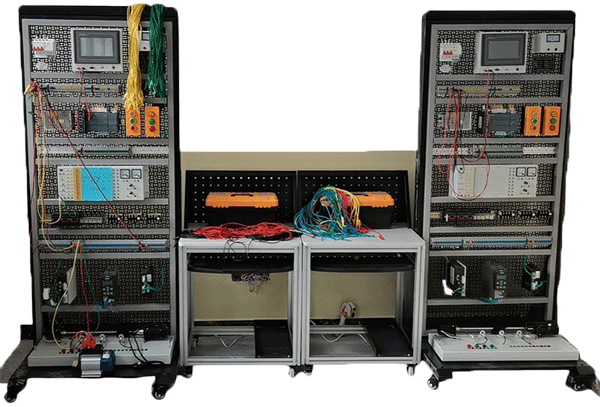 PLC電器實(shí)訓(xùn)臺、專門用于學(xué)員進(jìn)行電氣控制與實(shí)踐連接的控制平臺,采用歐標(biāo)鋁型材框架、立式設(shè)計網(wǎng)孔板形式安裝,可以安裝按鈕開關(guān)、指示燈、PLC控制系統(tǒng)、直流電源、電機(jī)等電氣元件。用于學(xué)生進(jìn)行電氣安裝與調(diào)試工作。PLC電氣實(shí)訓(xùn)裝置元器件與DIN導(dǎo)安裝為主,特殊情況無法安裝元件采用支架方式進(jìn)行固定,在進(jìn)行實(shí)訓(xùn)操作時學(xué)生可以自行進(jìn)行安裝與電氣線路連接。工業(yè)自動化網(wǎng)絡(luò)控制實(shí)訓(xùn)平臺、工作臺以網(wǎng)孔架為基礎(chǔ)實(shí)訓(xùn)單元,仿真企業(yè)真實(shí)環(huán)境,可開展PLC系統(tǒng)基礎(chǔ)模塊連接實(shí)訓(xùn)。該工作臺采用單面實(shí)訓(xùn)方式,實(shí)訓(xùn)區(qū)主要由電源單元、PLC單元、PLC學(xué)習(xí)箱單元、基礎(chǔ)實(shí)訓(xùn)單元、擴(kuò)展實(shí)訓(xùn)區(qū)(伺服控制小車運(yùn)動實(shí)訓(xùn)單元、步進(jìn)電機(jī)單元和變頻器單元)六大部分組成。