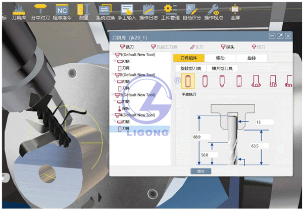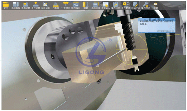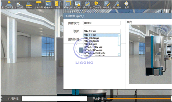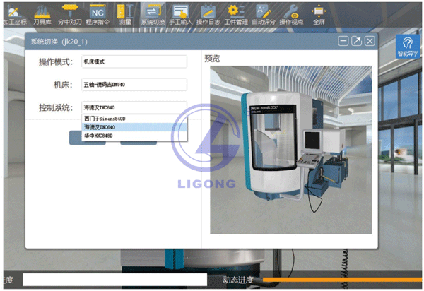 LGS-SX02型 數控車銑加工一體化創新仿真實訓平臺的數字孿生機床仿真部分,操作極為簡單,放大、縮小、旋轉、平移、觸控等等。學生無需特殊訓練,即可直接上手使用。可支持包括三軸的數控機床如法蘭克、西門子、華中、廣數,以及多軸的數控機床如西門子840D、華中848D、海德漢TNC640等主流操作系統,支持加工中心、車床、斜床等數控機床設備,目前數控I8多軸智能訓練機包含了11套不同類型數控系統設備。