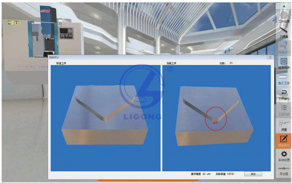 7、能夠進行數控系統的數字孿生虛實融合實訓操作和考核, 系統支持對加工結果進行自動評分。