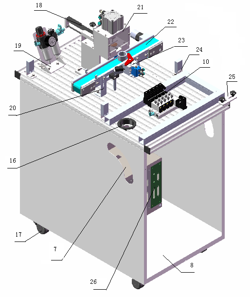 該系統的各站是安裝在帶槽的鋁型板上,各站可容易的連接在一起組成一條自動加工生產線。站內由各種模塊化形式構成,各模塊之間易于搭建、拆卸和維護,各工作站之間可隨意組合。