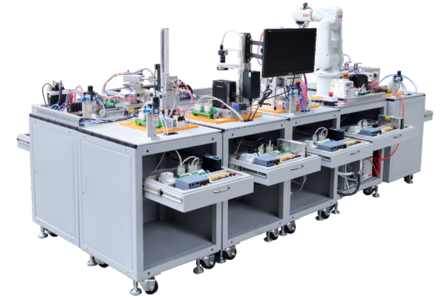 智能運動控制實訓教學考核裝備最大特點是它的綜合性和系統性,在這里,機械技術、氣動與液壓技術、圖像檢測與處理技術、工業機器人技術、電工電子技術、傳感測試技術、接口技術、信息變換技術、網絡通信技術等多種技術有機地結合,并綜合應用到生產設備中。智能運動控制還可以配備MES管理系統,MES管理系統是智能制造的核心技術和關鍵環節之一。而系統性指的是,生產線的傳感檢測、傳輸與處理、控制、執行與驅動等機構在微處理單元的控制下協調有序地工作,有機地融合在一起。