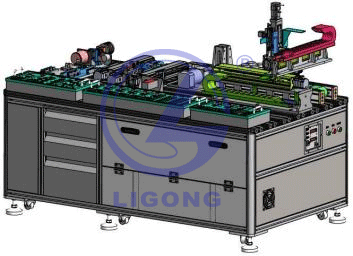 機架結(jié)構(gòu)采用鋁型材搭建,配地腳滾輪,警示燈,按鈕 控制盒,電氣元件安裝板采用可抽拉結(jié)構(gòu)。尺寸:(長寬高)1850×1050×850mm。