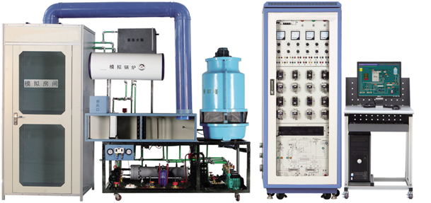 實訓對象采用不銹鋼鋼架制成,系統由制冷機組、冷卻水系統、媒水水系統、供暖系統等組成。