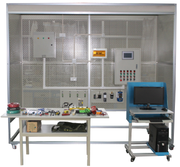 7) 該設備主要由模擬房、實訓柜、裝配桌、電腦桌、模塊架、伺服電機模塊、步進電機模塊、雙速電機模塊、交流異步電機模塊、傳感器模塊、電源電源箱模塊、電氣控制箱模塊、工具配件組成。