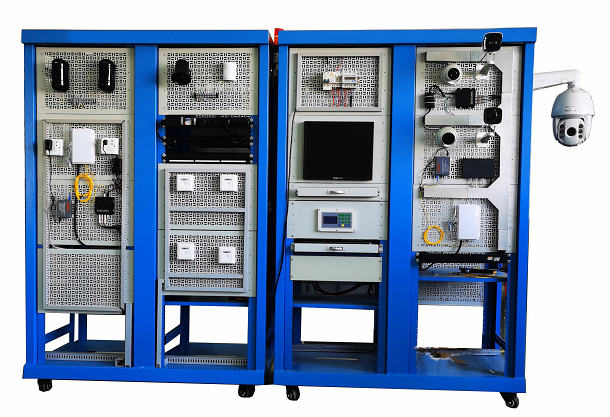 2.樓宇視頻監控實訓系統采用開放式和拆裝式結構設計,采用噴塑鋼型材+網孔板結構,結構堅固,配有常用電源控制,能對各系統進行供電、接線、調試運行和維護實訓和考核。設備有配有安全設備電源裝置,實訓臺還設有四個萬向輪和四個固定調節機構,便于移運和固定,有利于實訓室布局。