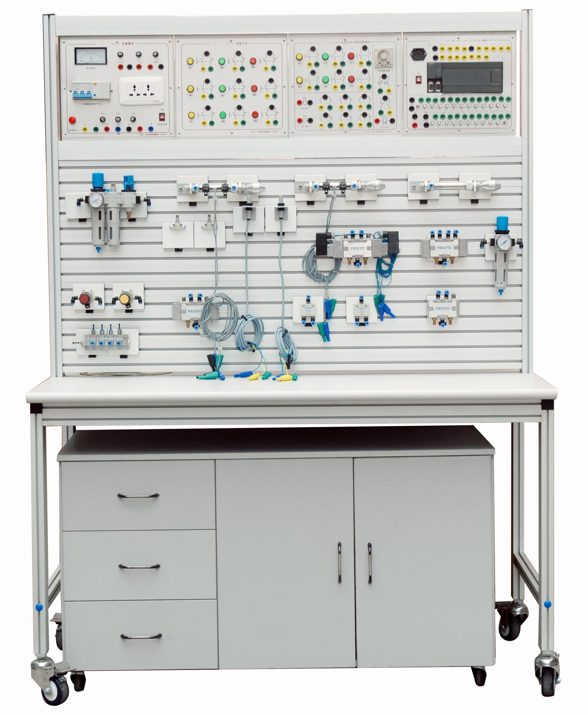 LG-LQD02型 雙面氣動綜合實訓臺具備培訓所需要的很多功能,工作面積大,電器元件單獨擺放,電源系統與實訓臺融為一體,帶有存儲元件區域,可以存儲練習中不需要的元件,也可以準備練習所需要的元件。雙面氣動綜合實訓臺完全能滿足氣動和電氣氣動的教學培訓,并有拓展的空間,完整組裝。