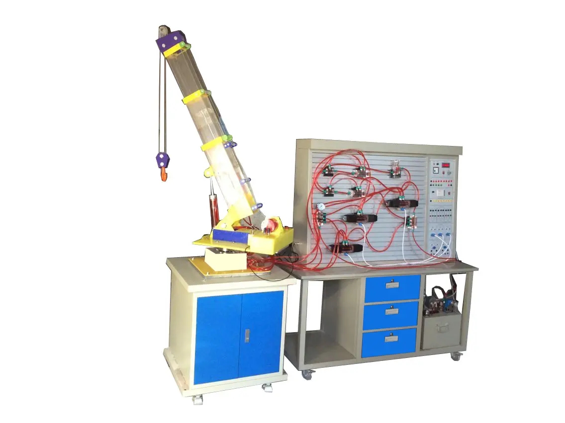 3、透明起重機液壓實訓臺可模擬真實起重機工作裝置的各種動作。液壓系統采用進口透明機玻璃液壓元件、透明尼龍軟管搭接而成,液壓元件結構、工作原理,液壓回路工作原理一目了然。整個實訓臺具有形象、直觀、方便、可靠等優點。