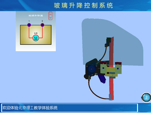 玻璃升降器虛擬仿真教學軟件中的電動機是由雙聯開關按鈕控制,設有升、降、關等三個工作狀態,開關不操縱時自動停在 " 關 " 的位置上。縱電路設有總開關(中央控制)和分開關,兩者線路并聯。在汽車軟件教學中也能完全展現出來,適用于各類院校教學,歡迎定制!
